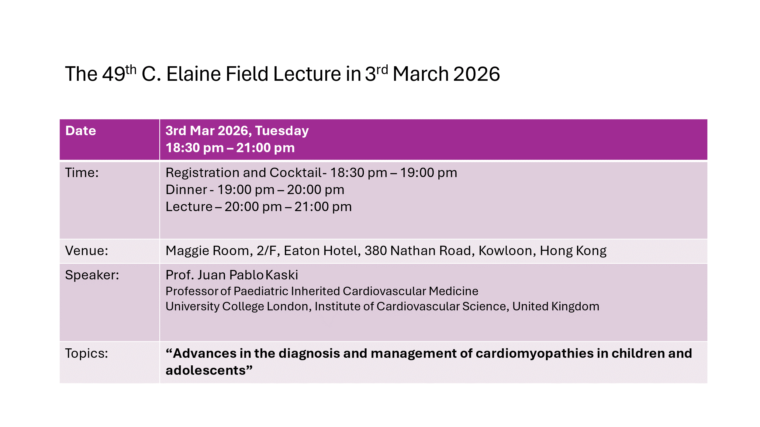 (1) Oration on Child Health 2012 of HKPS, (2) Special Seminar on Centre of Excellence in Paediatric (CEP) in Hong Kong, (3) The 50th AGM of the HKPS